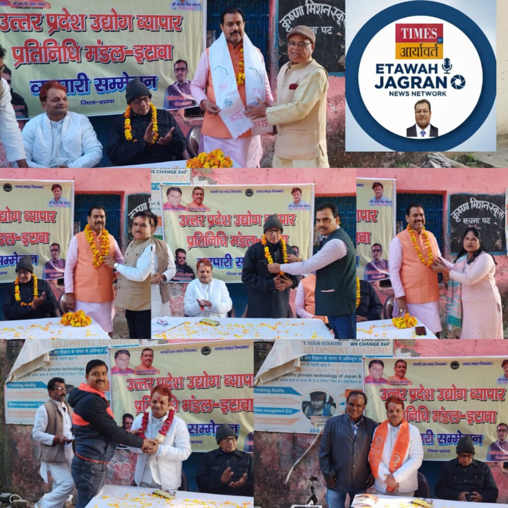 इटावा।उत्तर प्रदेश उद्योग व्यापार प्रतिनिधिमंडल के प्रदेश वरिष्ठ उपाध्यक्ष बनाए जाने पर एमपी सिंह तोमर का पुलिस लाइन के सामने बाबा बर्फानी निर्मल जल प्रतिष्ठान पर आयोजक जिला उपाध्यक्ष शैलेंद्र सिंह राजावत एवं देवेंद्र सिंह चौहान के द्वारा भव्य स्वागत किया गया कार्यक्रम की अध्यक्षता इंजीनियर रमेश बाबू शर्मा ने की संचालन गोपाल नामदेव ने किया।
