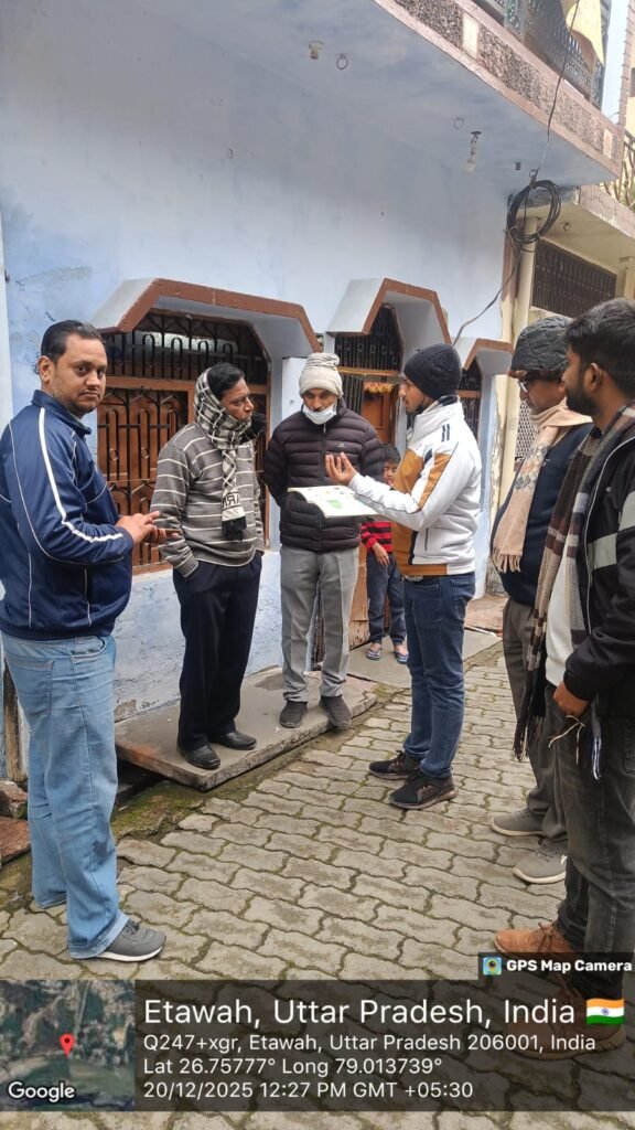 इटावा।नगर पालिका परिषद,इटावा की अध्यक्ष श्रीमती ज्योति संटू गुप्ता एवं अधिशासी अधिकारी संतोष कुमार मिश्रा के निर्देशानुसार स्वच्छ भारत मिशन के डीपीएम सुनील कुमार की देख रेख मे ,डॉ० हरीशंकर पटेल ब्राण्ड एम्बेसडर - स्वच्छ भारत मिशन (नगरीय) के नेतृत्व में विशेष सहयोगी के रूप में - आई टी सी से सुजीत कुमार और जिओस्टेट से विवेक सिंह के द्वारा स्वच्छ सर्वेच्छण 2025 - 26 में नगर पालिका परिषद , इटावा को प्रथम लाने के उद्देश्य से डोर टू डोर गीला कूड़ा , सूखा कूड़ा तथा हानिकारक कूड़े को अलग- अलग डस्टबीनों में रख कर कूड़े वाली गाड़ी के भइया को दे