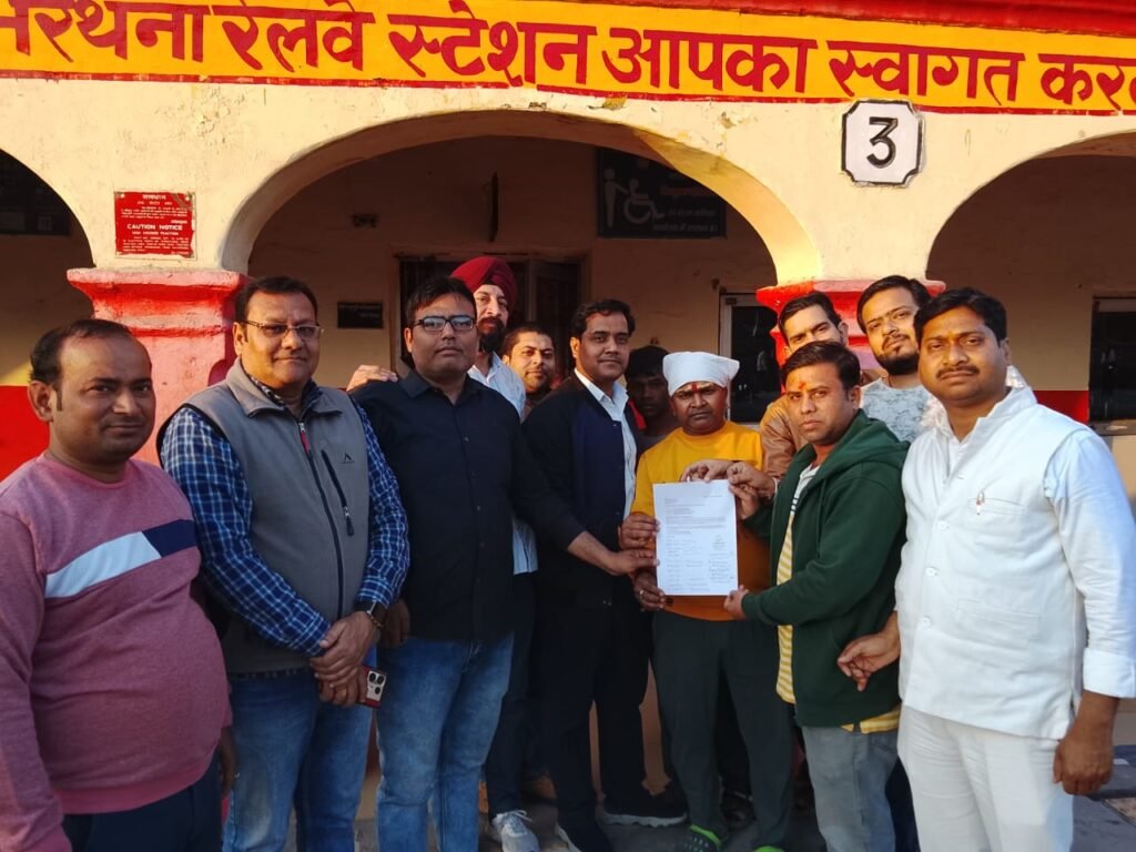 भरथना। कोरोना काल के दौरान बंद की गई ट्रेनों के ठहराव को पुनः बहाल कराने की मांग को लेकर स्थानीय प्रतिनिधियों और पदाधिकारियों ने रेल मंत्री अश्विनी वैष्णव को संबोधित एक ज्ञापन सौंपा। उक्त ज्ञापन भरथना स्टेशन अधीक्षक नवीन पोरवाल को दिया गया।