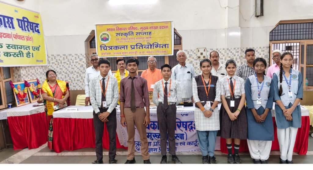 इटावा। भारत विकास परिषद् मुख्य शाखा इटावा ने संस्कृति सप्ताह के पंचम दिवस पर चित्र कला और विज्ञान प्रदर्शनी प्रतियोगिता का आयोजन किया जिसमें नगर के छात्र छात्राओं ने बढ़ चढ़ कर हिस्सा लिया। कार्यक्रम के मुख्य अतिथि अवकाश प्राप्त प्रधानाचार्य बृजानन्द शर्मा और विशिष्ट अतिथि पांचाल प्रान्त के मार्ग दर्शक राजेन्द्र कुमार दीक्षित व क्षेत्रीय गतिविधि संयोजक सेवा विवेक कुलश्रेष्ठ, शाखा अध्यक्ष हरी शंकर त्रिपाठी, कोषाध्यक्ष विवेक रंजन गुप्ता, सह सचिव नन्द कुमार यादव, सप्ताह प्रभारी श्रीमती सुमन दुबे, कार्यक्रम संयोजक द्वय पूर्व प्रान्तीय महासचिव संजय मिश्रा व मुलायम सिंह यादव और कार्यक्रम प्रायोजक आनन्द कुमार सरवही ने भारत माता और स्वामी विवेकानन्द जी के चित्रों पर माल्यार्पण कर दीप प्रज्ज्वलित कर कार्यक्रम का शुभारंभ किया।